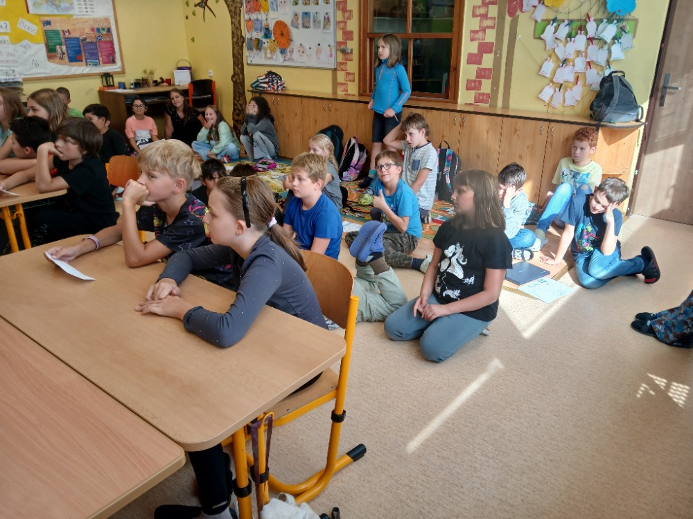 Ve středu 26. září žáci 5. tříd společným projektem oslavili Evropský den jazyků. Ve skupinkách si vylosovali jeden evropský stát a na internetu o něm hledali základní informace, které poté prezentovali před svými spolužáky. Na závěr namalovali vlajky na chodník a jejich výtvory byly natočeny dronem
