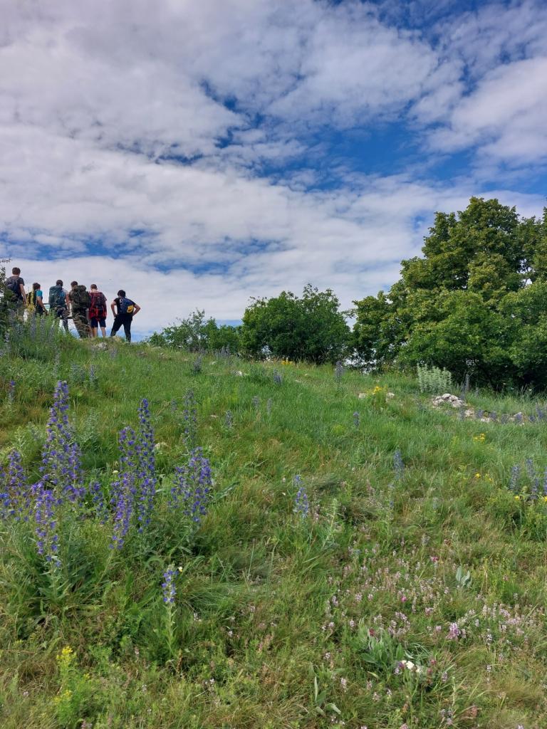 První den jsme dojeli vlakem do Mikulova, kde jsme si prohlédli jeho historické centrum, prošli si zámeckou zahradu a poté se vydali na túru dlouhou 12 kilometrů z Mikulova přes Pavlovské vrchy až do Pavlova. Počasí nám přálo a my jsme mohli obdivovat krásu rostlin, rostoucích na vápencích, jako je třeba šalvěj luční, písečnice velkokvětá, hvozdík kartouzský a dub šípák, který má ve znaku CHKO Pálava. Kromě různých druhů motýlů jsme také potkali cvrčka polního a chrobáka lesního. Minuli jsme Kočičí skálu, vyšlápli jsme na Sirotčí hrádek, Děvín a Dívčí hrady, ze kterých se nám naskytl nádherný výhled na Novomlýnské nádrže. Poté jsme sestoupali do Pavlova, kde jsme navštívili Archeopark, který se soustředí na kulturu „lovců mamutů“, tedy Homo sapiens z doby asi před 30 tisíci lety. Po prohlídce jsme dojeli autobusem do Velkých Pavlovic, kde jsme se ubytovali.