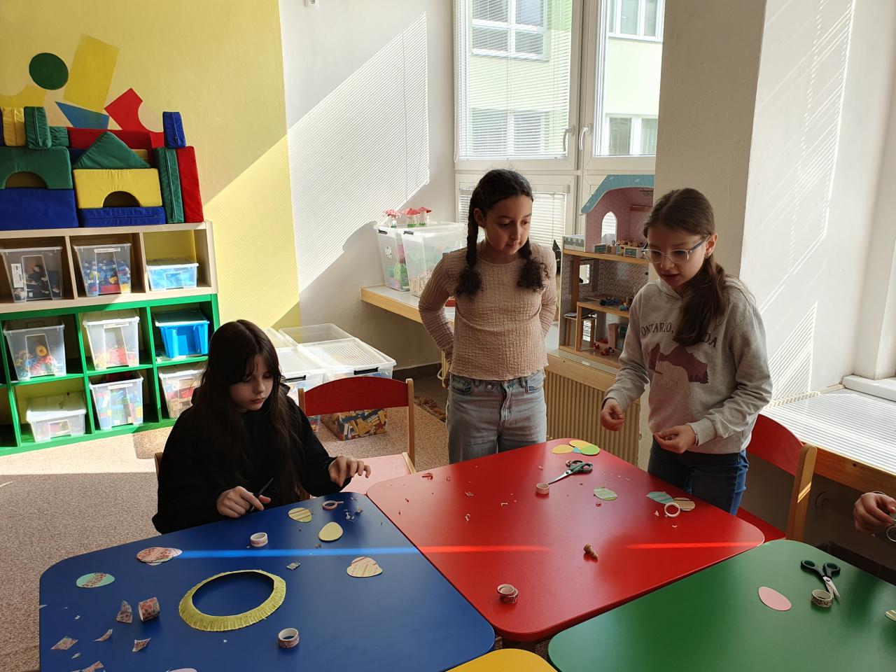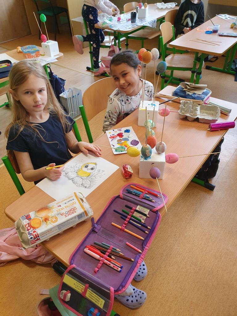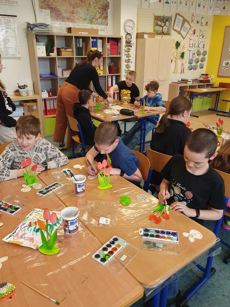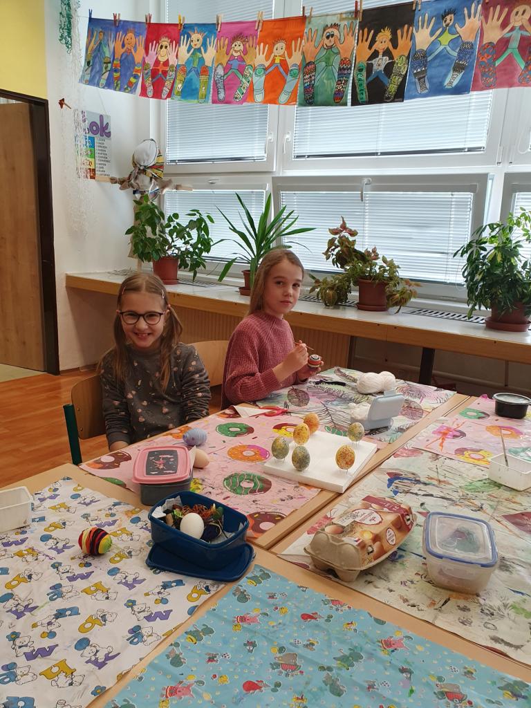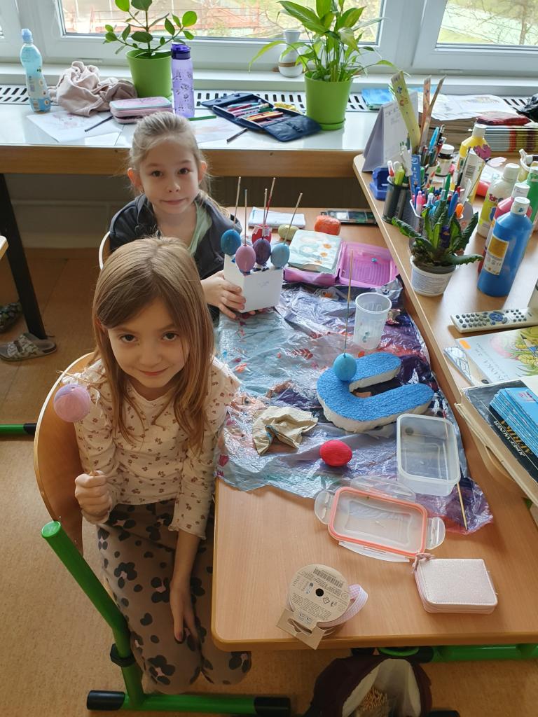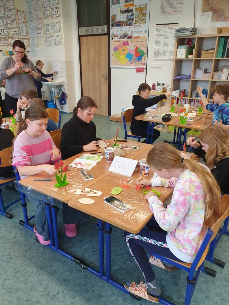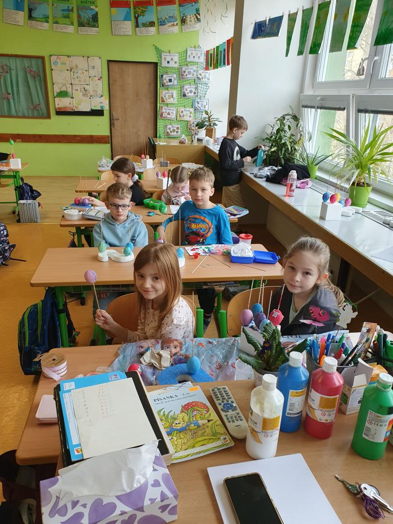 Na jednotlivých stanovištích se pilně tvořilo – žáci vyráběli roztomilé velikonoční zajíčky jako zápichy do květináčů, sázeli jarní osení, zdobili velikonoční věnečky, pletli náramky, vytvářeli přáníčka a nechybělo ani zdobení kraslic. Každý si mohl vybrat to, co ho nejvíce baví a odnést si domů vlastnoručně vyrobenou jarní ozdobu.