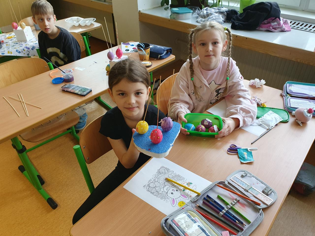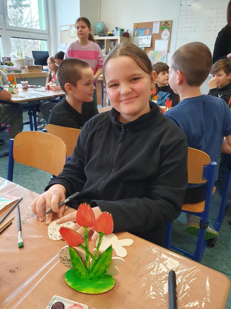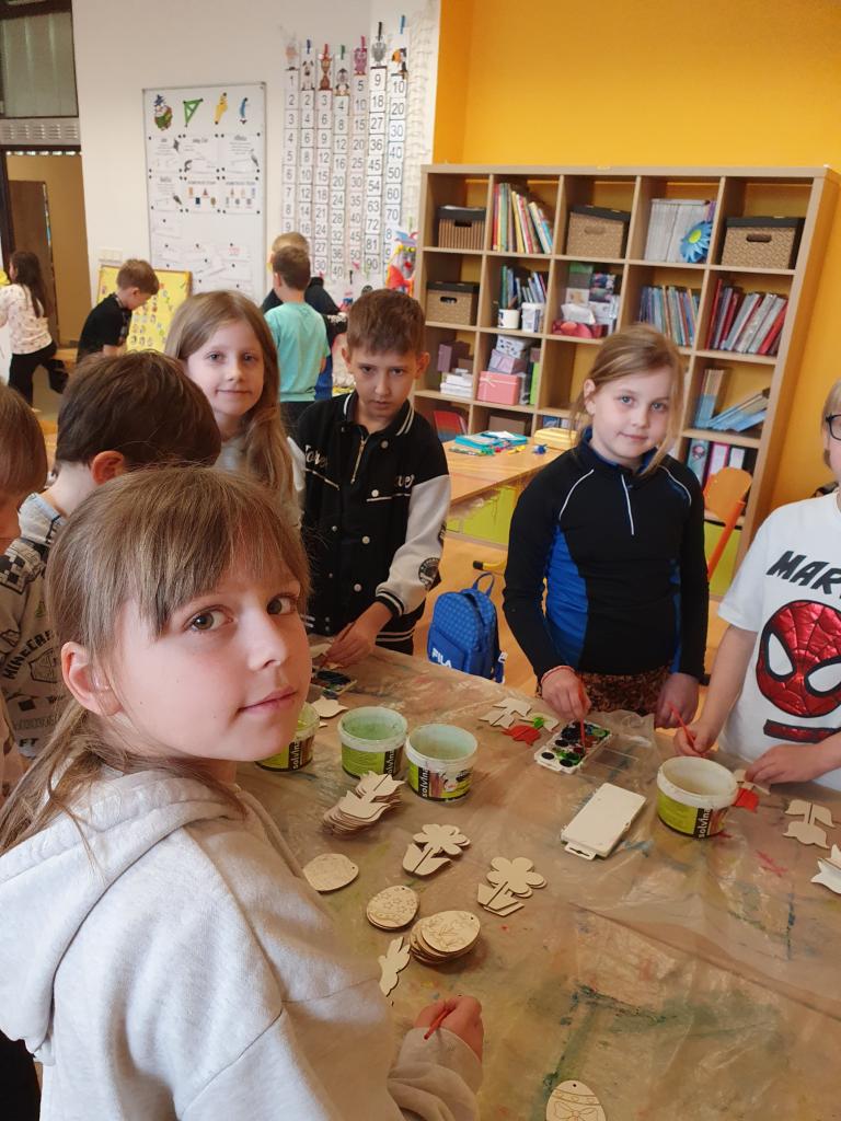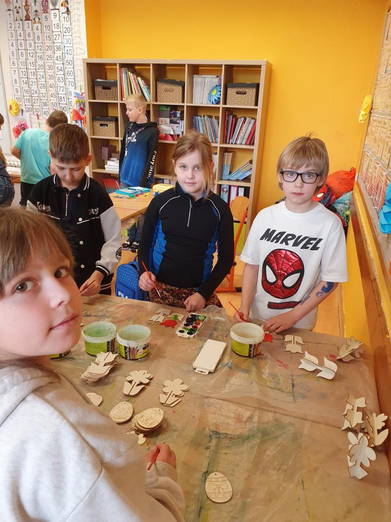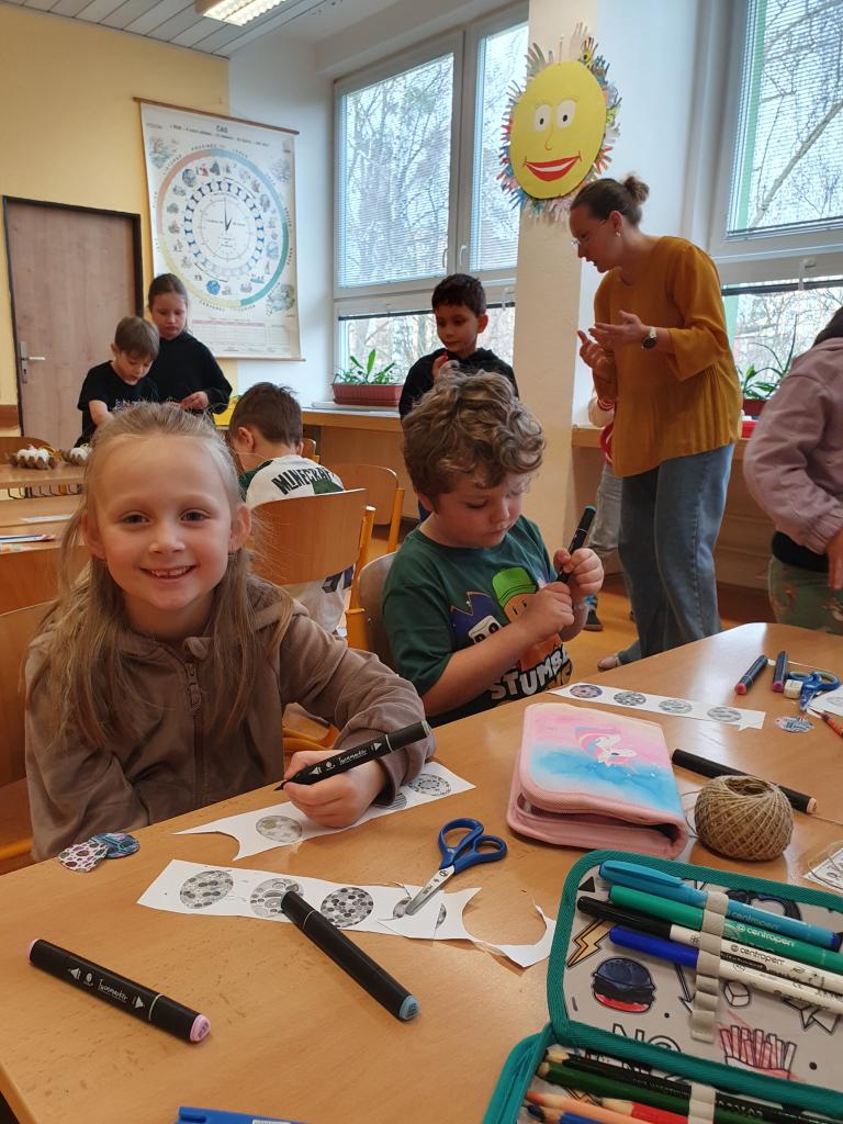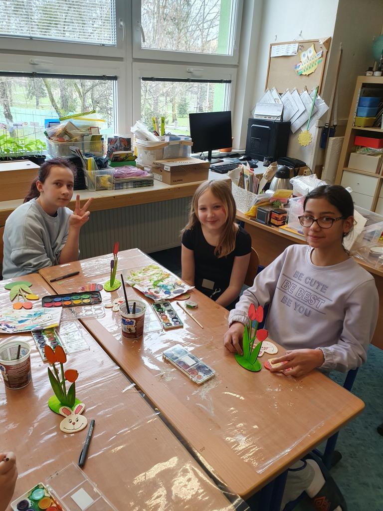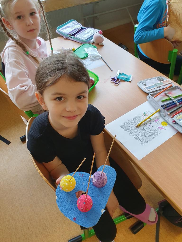 Na jednotlivých stanovištích se pilně tvořilo – žáci vyráběli roztomilé velikonoční zajíčky jako zápichy do květináčů, sázeli jarní osení, zdobili velikonoční věnečky, pletli náramky, vytvářeli přáníčka a nechybělo ani zdobení kraslic. Každý si mohl vybrat to, co ho nejvíce baví a odnést si domů vlastnoručně vyrobenou jarní ozdobu.